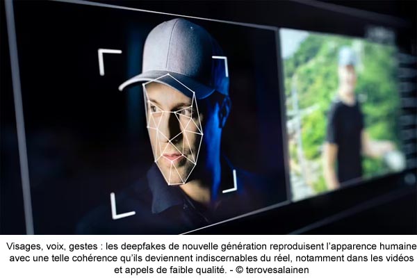 Visages, voix, gestes : les deepfakes de nouvelle génération reproduisent l’apparence humaine avec une telle cohérence qu’ils deviennent indiscernables du réel, notamment dans les vidéos et appels de faible qualité. – © terovesalainen En 2025, les deepfakes ont franchi un seuil critique : plus réalistes, plus massifs, plus faciles à produire. À l’aube du temps réel, ils ne trompent plus seulement le public, mais commencent aussi à déborder les capacités de détection des institutions.