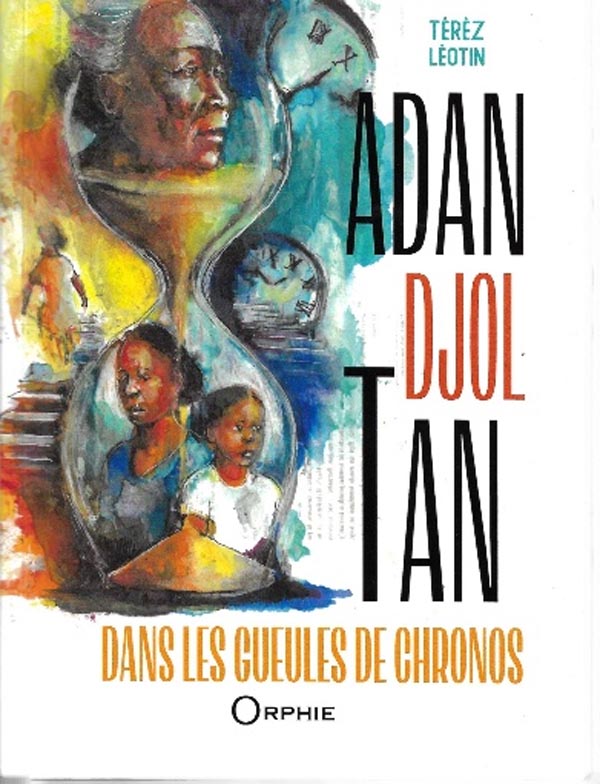 Sur la couverture de l’ouvrage, on aperçoit trois personnes à travers un sablier. Nous savons que c’est un instrument de mesure du temps. Il laisse croire que la vie et ses difficultés passent dans cet objet qui égraine peu à peu le temps, au fil des dates jusqu’à ce qu’il n’en reste plus rien. Le titre du livre est : « Adan djol Tan/ Dans les gueules de Chronos ». Si nous nous trouvons dans les gueules des différents temps, pouvons-nous penser qu’elles risquent de nous dévorer ?