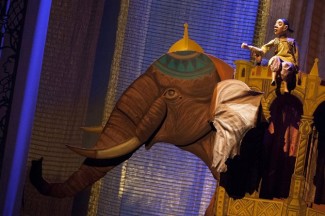 Le théâtre du Jeu de Paume, à Aix-en-Provence, a produit en 2013 ce spectacle repris cette année, qui illustre un épisode bien connu des Mille et une nuits. Après le désistement de Charles Tordjman, metteur en scène, Matej Forman, co-directeur avec son frère jumeau d’un théâtre qui allie les marionnettes à des animaux stylisés, le tout dans des décors naïfs, est resté le seul maître à bord. L’univers des frères Forman collant particulièrement bien avec celui de l’enfance, on était curieux de découvrir cette adaptation d’Aladin.