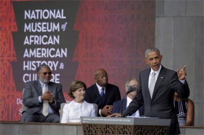 Ce fut une très belle cérémonie pour l’inauguration d’un musée souhaitée par les Afro-Américains depuis 1950 et dont la construction fut finalement autorisée par George Bush en 2003.
