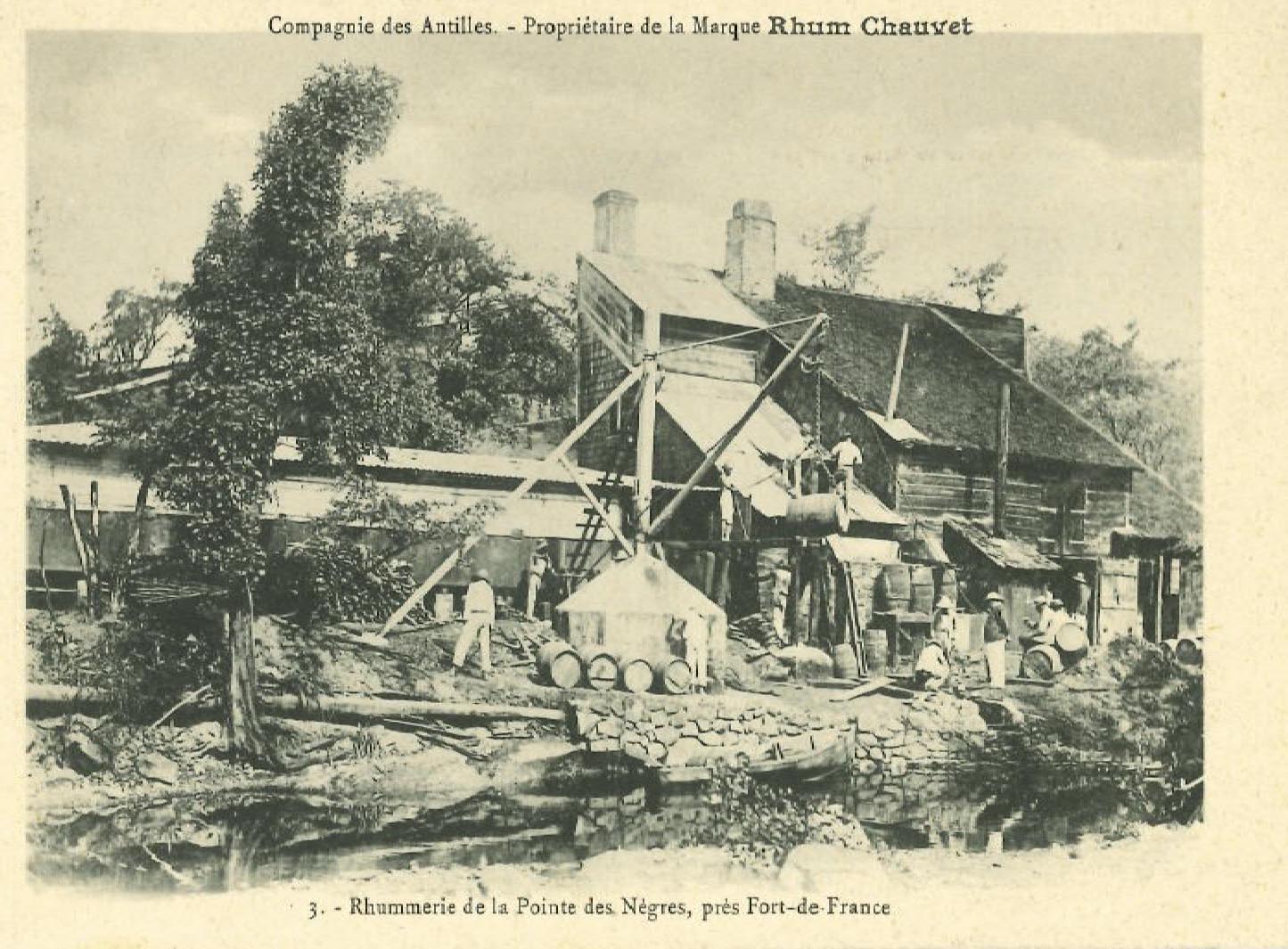 La distillerie Chauvet est signalée pour avoir fonctionnée dans la plaine littorale de la crique de la Pointe-des-Nègres en 1898. Elle produisait le rhum, du nom de son distillateur et a été vendue à la Compagnie des Antilles. Elle était alimentée par les cannes de l’habitation Pointe-des Nègres et surtout par le vesou de Rivière Salée et de Sainte-Lucie. En 1925, la rhumerie de la Pointe des Nègres appartenait en partie à Hyppolyte Ernoult.