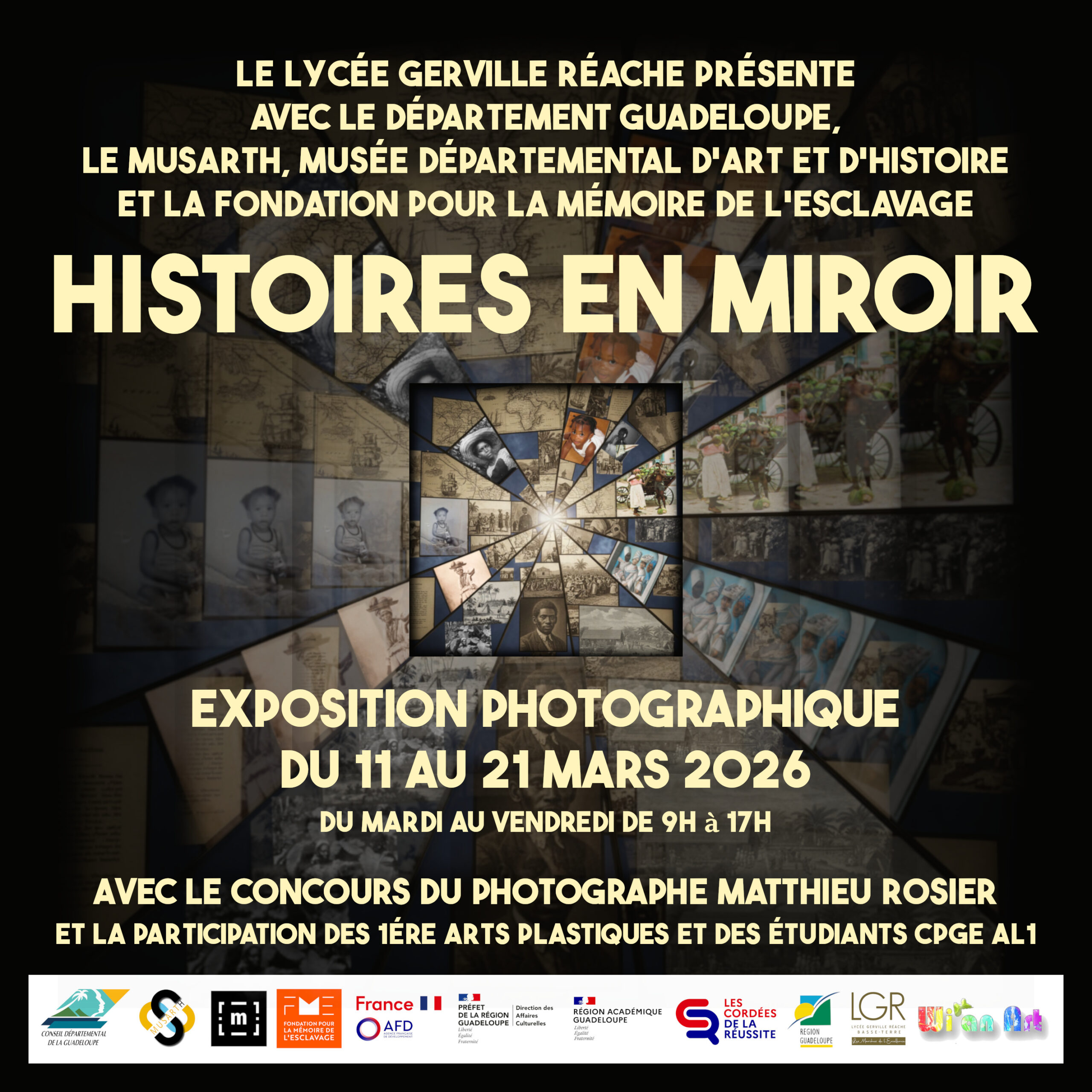 Nous avons eu la chance d’accueillir au lycée Gerville Réache le photographe et artiste visuel Matthieu ROSIER du 22 septembre au 8 octobre 2025, grâce au soutien de la Fondation pour la Mémoire de l’Esclavage. Durant son séjour, il a animé une série de rencontres et d’ateliers avec trois groupes d’élèves et étudiants: les deux groupes de 1ère Spécialité Arts plastiques et leur enseignant, M. Christophe GORIN, et la classe d’étudiants CPGE AIL 1ère année et leur enseignant d’Histoire, M. Gilles DELATRE.