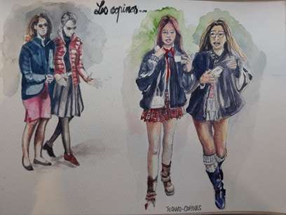 Hélène Jacob a deux manières bien distinctes, portraitiste délicate dans les croquis pris sur le vif (comme dans « Les copines »), ses peintures surchargées de collages – toujours en rapport avec le personnage représenté – impressionnent par l’intensité des couleurs tout comme par le dessin, compromis subtil entre un réalisme classique et la liberté formelle propre aux modernes. On en jugera d’après la première photo qui regroupe deux « Venus » de l’exposition , « Vini wé venus » (à gauche) et « Venus fantasma » (à droite).