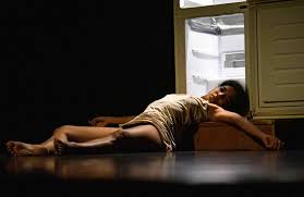 Le réfrigérateur en question est de ceux qui intègrent un congélateur en bas, avec donc deux portes. Il est bien sûr complètement évidé et la danseuse se trouve à l’intérieur quand le spectacle commence. Cette pièce qu’on verra plutôt comme une performance ne cherche pas la virtuosité (dont la danseuse est sans nul doute capable) mais à exprimer les sentiments que peuvent être ceux d’une femme qu’on devine pauvre et malheureuse car elle ne manifeste que bien rarement quelque chose qui puisse s’apparenter à de la joie.
