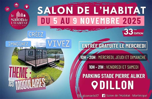 Jusqu’à dimanche, le Salon de l’habitat se tient sur le parking du stade Pierre-Aliker à Dillon (Fort-de-France). L’édition 2025 met à l’honneur la construction modulaire, avec une maison témoin grandeur nature qui attire de nombreux visiteurs.