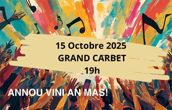 Unis par une même cause, Mali, Martin Bellonie, Nicole Cage, Karibbean Sound System, Koezyon et de nombreux artistes montent sur la scène du Grand Carbet pour un spectacle exceptionnel, mêlant musique, poésie et engagement.