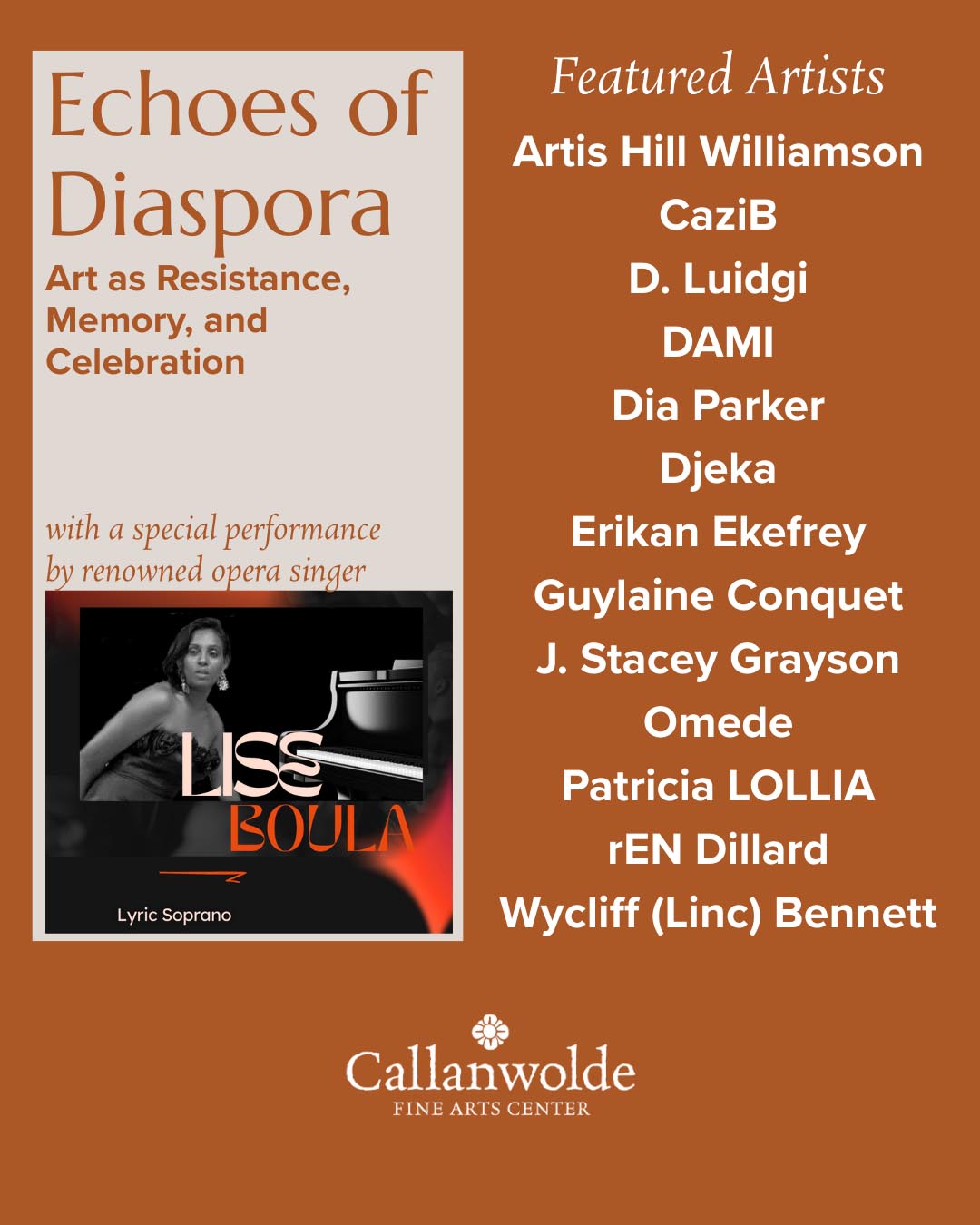 Dans le cadre de « THE BLACK HISTORY MONTH ¬, Patricia LOLLIA a été sélectionnée pour participer à l’exposition « ECHOES OF THE DIASPORA ¬.qui se tiendra du 29 Janvier au 26 Février 2026. au « CALLANWOLDE FINE ARTS CENTER ¬.à Atlanta en Géorgie.